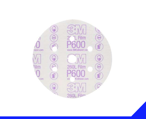 Giấy nhám tròn 3M 01071 Độ nhám P600 – 260L Film dùng xử lý vết xước hoặc da cam, bụi sơn. Giáy nhám 3M có độ bền cao, tiết kiệm và hiệu quả chà nhám cao